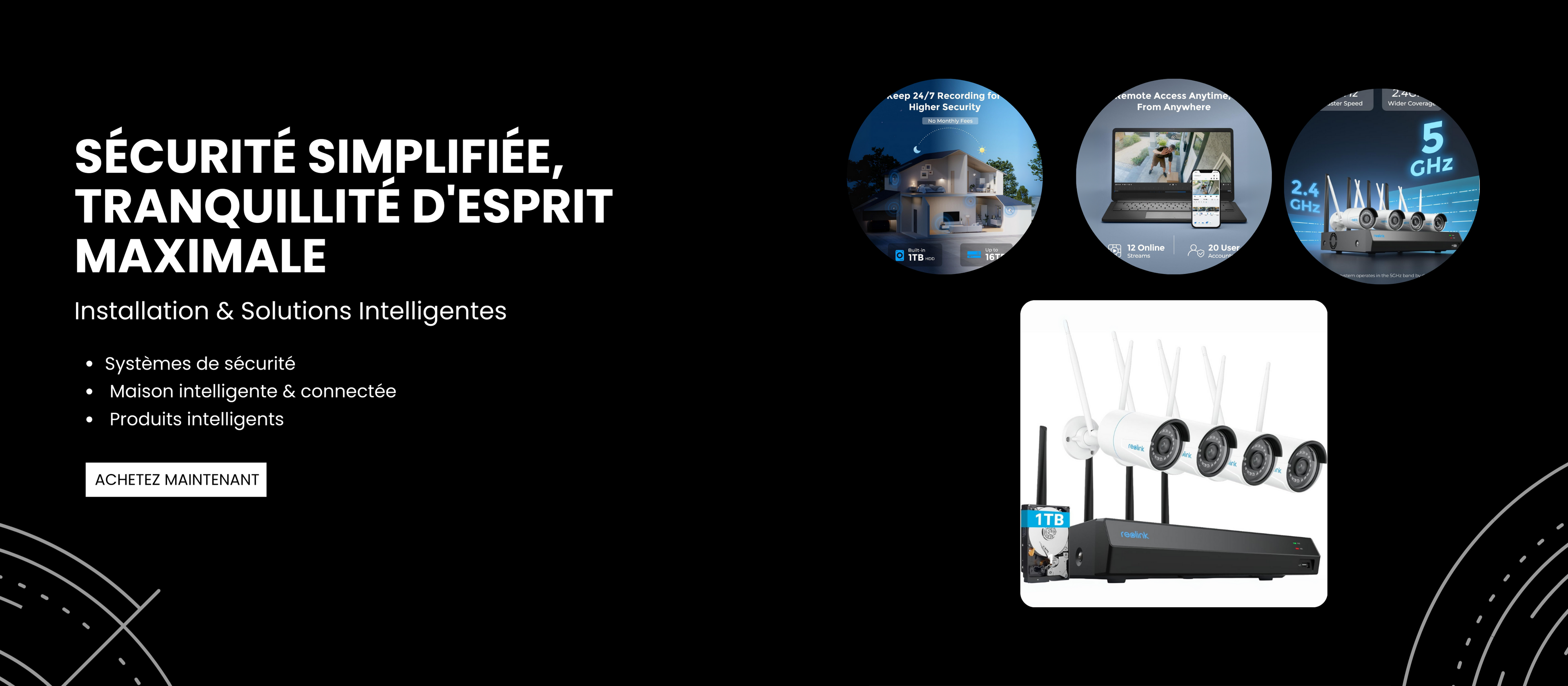 Pack Sécurité Confort – Reolink Wi-Fi 5MP (4 caméras + NVR + installation)